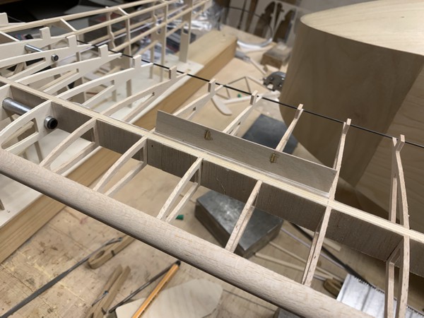 Also ich habe auch die Diagonalen zur Versteifung im Rumpf eingebaut, nur hatte ich keine Schaschlik-Spiesse, ich hab dünne Balsaleisten benutzt.