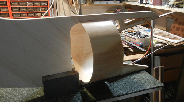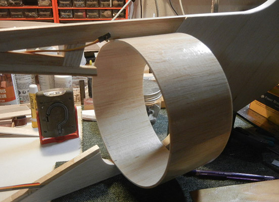 il ne faut pas que ça se déforme avec le souffle de l'hélice, surtout que je pense pouvoir l'intégrer dans la structure sans la découper en quartiers pour s'adapter à la croix des poutres arrières… ce serait préférable.