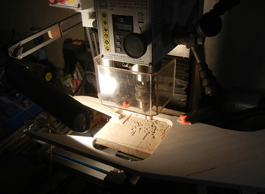 Comme ces grosses baguettes de balsa sont raides comme du pin… direction fraiseuse !