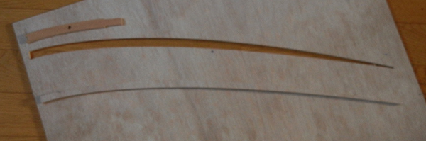 j'ai retrouvé dans mon stock de planches un morceau de CP de 5 pour découper le gabarit de montage des nervures
