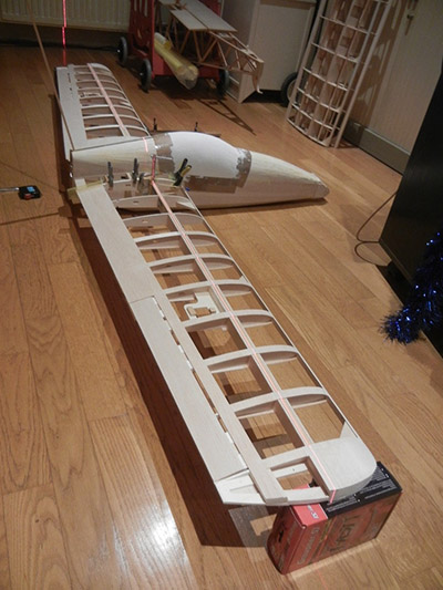 suite avec le calage des ailes et collage de la nervure d'emplanture : à l'œil ça parait bon… le laser est impitoyable Laughing