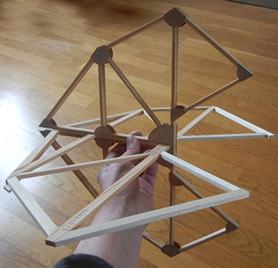 Les 3 morceaux de tubes en alu, au diamètre des 3 tubes des sommets des triangles vont me permettre d'ajuster précisément les 3 autres tubes de chaque côté du triangle avec le bon arrondi ou biseau aux jonctions.