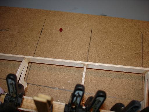 die obere QR-Beplankung ist aufgeleimt - vorerst eine ziemlich wellige Geschichte. Ich hoffe das wird dann im Verbund mit der Unterseite besser. Aber es darf auf jeden Fall leichte Wellen geben - so ist es ja bei den Orginalen auch.