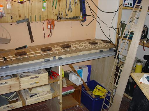 Ich werde also nach dem Beplanken der Oberseite gleich die 2. Fläche aufbauen und dann die neue Flächenhelling bauen und beide Flächen fertigstellen - ich denke da spricht nichts dagegen...