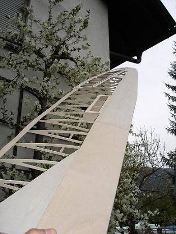 Und auch zu sehen die Endleiste. Das ist allerdings mit dem dünnen Sperrholz eher die perfekte Welle