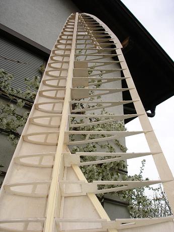 Die Sperrholzbauweise offenbart auch die Erkenntnis, dass man sehr sauber arbeiten muß. Dafür spart man sich aber viel Schleifarbeit. 1mm da und noch einer dort - sollte man vermeiden - bei 0,6 oder 0,8mm Sperrholz kann man nichts mehr "Korrekturschleifen".