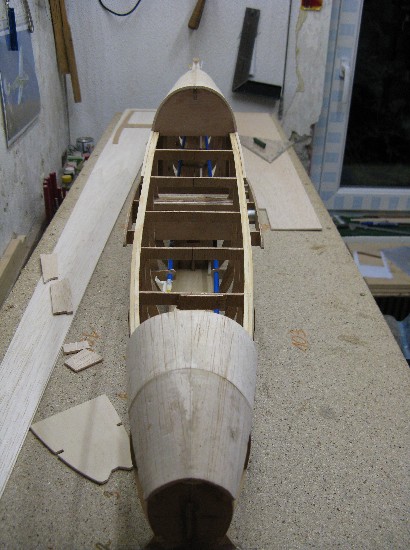 .....habe bereits mit der Beplankung begonnen, geht ganz gut von der Hand