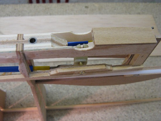 ........heute habe ich die Schleppkupplung soweit fertig gestellt , daß ich mich als nächstes an die Beplankung des Rumpfes heran wage. Die Servokabel werden vorher auch noch sauber verstaut.