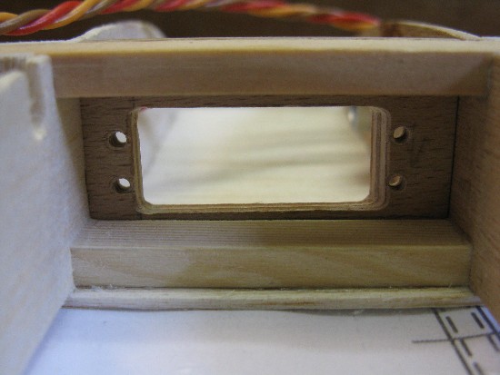 Die Rippe 6 wurde noch mit einem 1,5 mm Flugzeugsperrholz verstärkt und der Sperrholzrahmen (3mm) für die Serviceklappe wurde angefertigt und verleimt. Die Serviceklappe ist aus 1,5 mm Sperrholz.