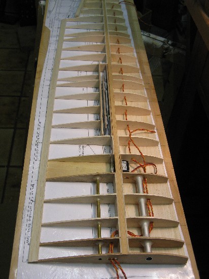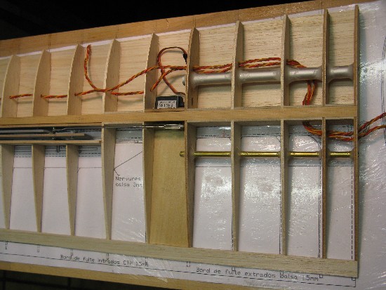 après une petite pause j'ai commencé poser les cables électriques pour les servos dans la voilure.