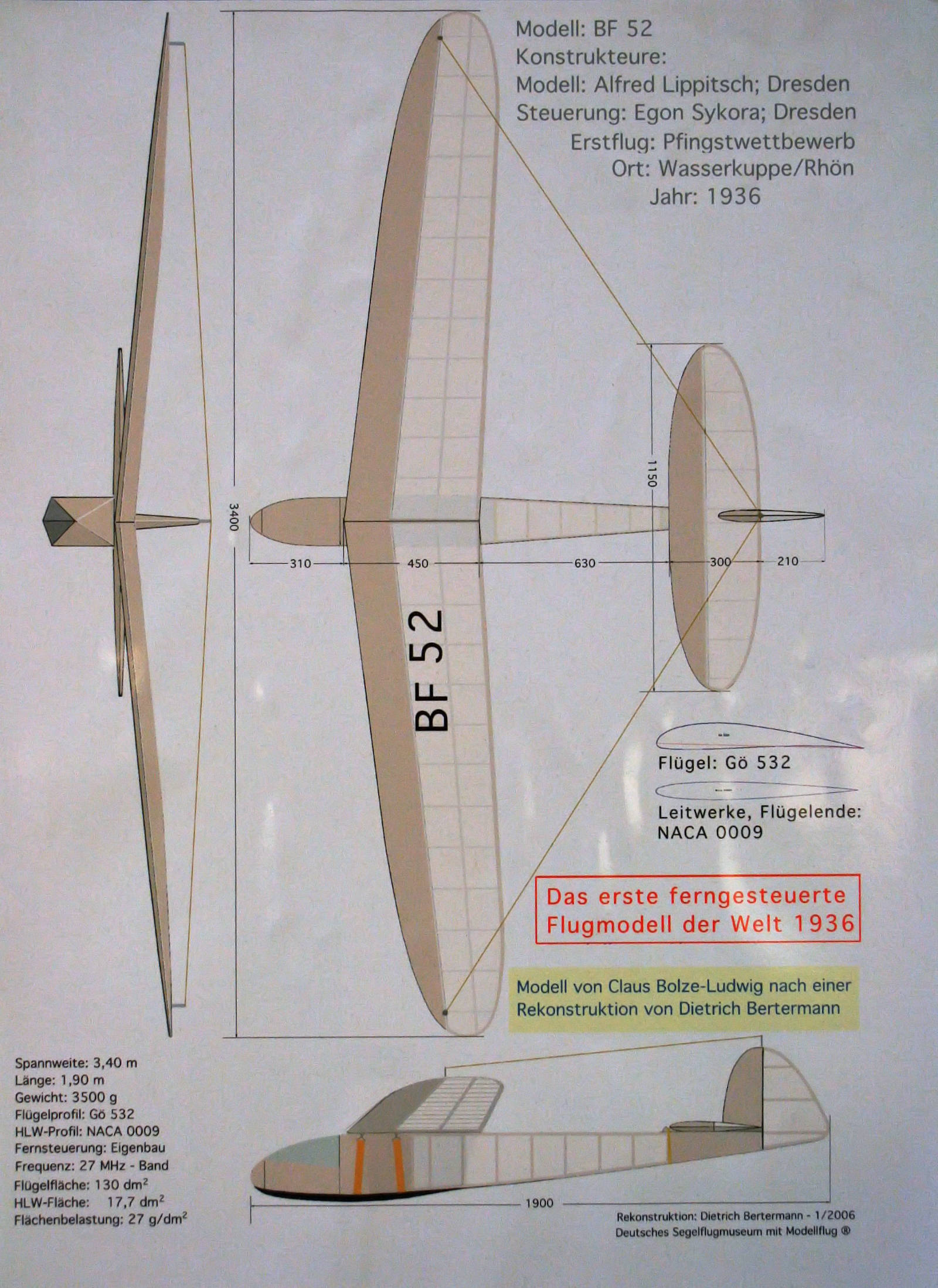 Quelqu'un aurait-il fait une photo du plan du BF52 ci-dessous au musée de Wasserkuppe ? Il y avait un plan au mur, ainsi que des explications (c'est un des premiers planeurs radio-commandés) ?