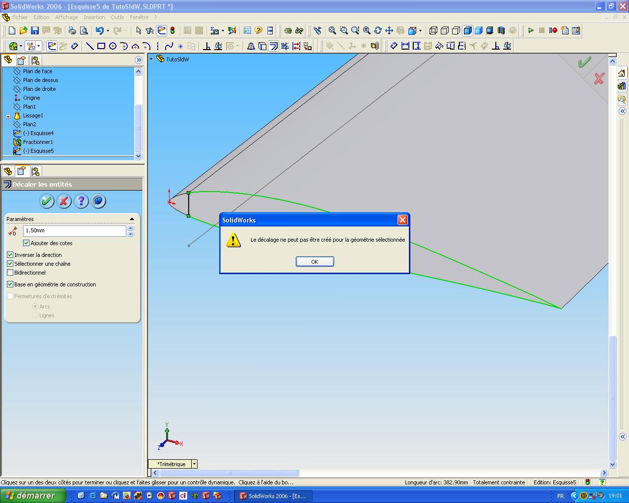 Le décalage fonctionne vers l'exterieur, si on coche inverser la directtion, message d'erreur. Jai le même problême avec ma méthode pour faire une coque suivant l'épaisseur du profil. je pense que cela provient de l'angle du BF trop aigu.