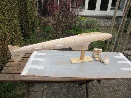 The Hjordis is now making good progress. Spent an afternoon preparing all the actuation rods . I sheeted the wing center section and made a hatch in it, to get to the connections. I also made a bust for the pilot, because of the lipo it couldn't fit a complete pilot.