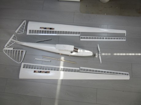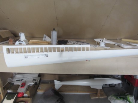 About the holes in the webbing; in hindsight, it would have been better to place the Bowden cable behind the main spar in its entirety and to turn the bellcrank around !